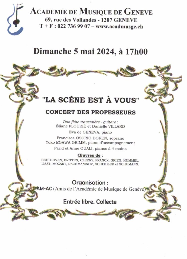 Concert de musique classique par les professeurs de l’Académie de Musique de Genève.